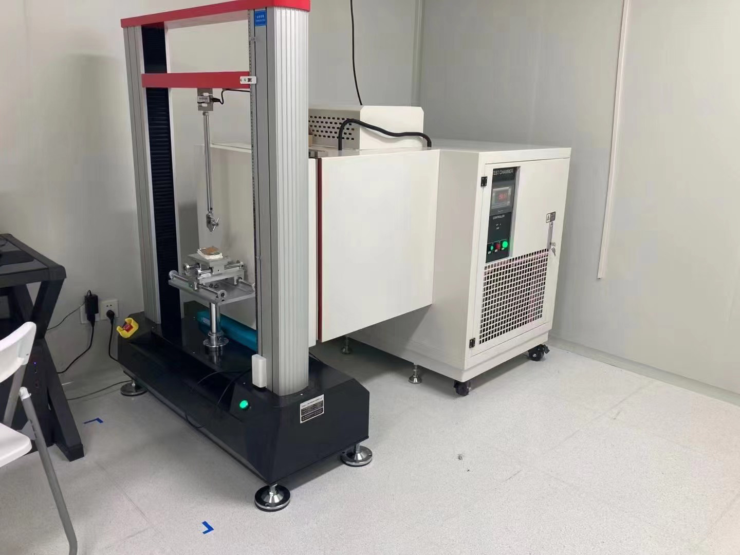 本次上海治臻采購我司高低溫拉力試驗機,高低溫拉力機是由高低溫箱和雙柱拉力機組成的,高低溫試驗箱常溫~300度,下面是現場培訓照片: